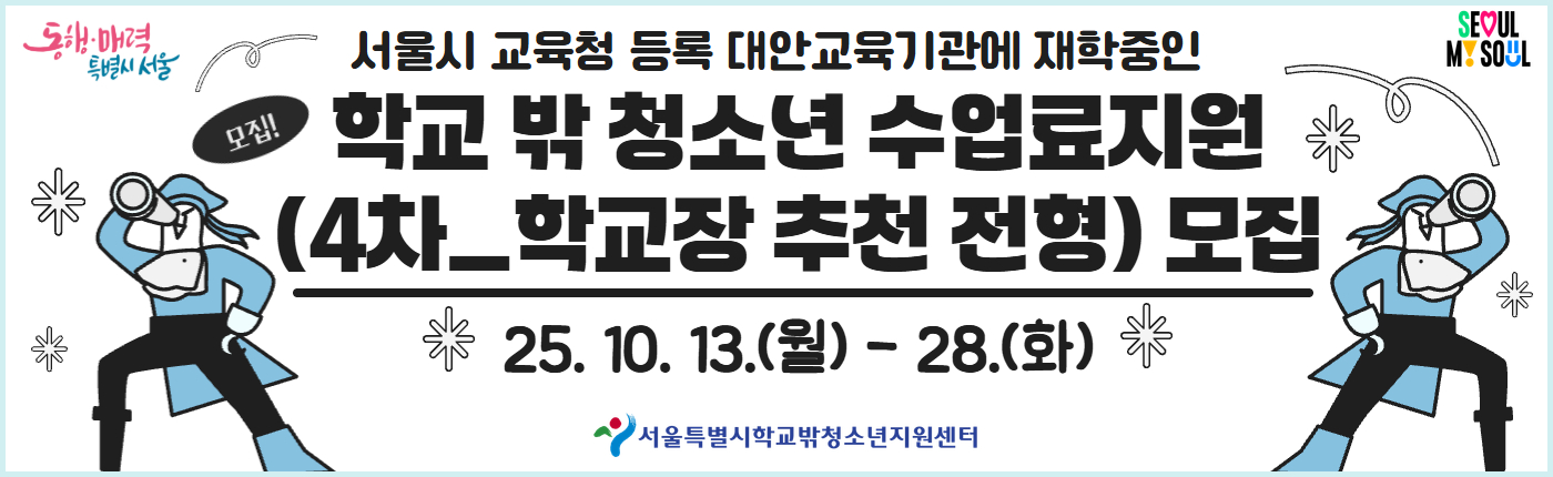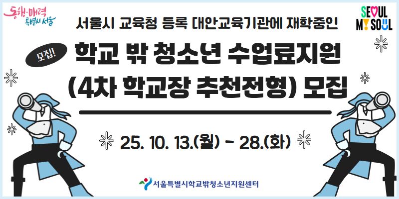 2025년 학교 밖 청소년 수업료 지원(4차) 모집