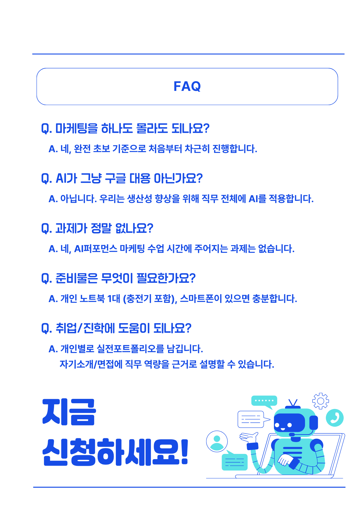 ⭐100시간 중 매주 화요일 20시간은 AI 퍼포먼스 마케팅 수업으로 진행됩니다.⭐