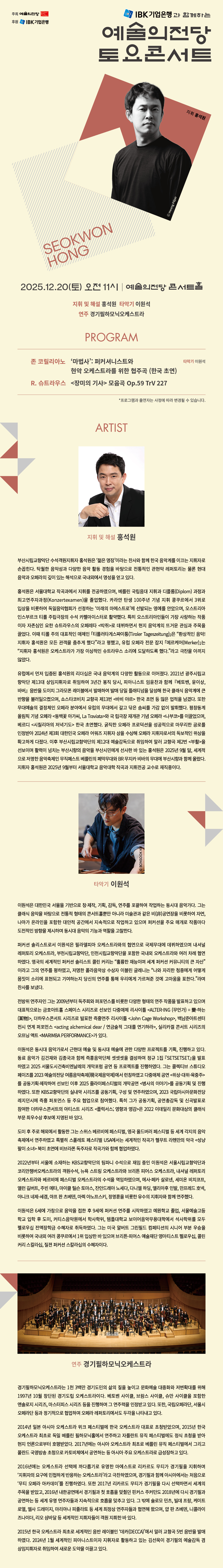 프로그램 신청 HOME > 프로그램 > 프로그램 신청 링크공유 프린트 12월 문화예술관람지원 신청(예술의전당 토요콘서트) 대상 모집 인원 프로그램 기간 2025-12-20 ~ 2025-12-20 신청 기간 2025-12-12 ~ 2025-12-12 장소 방식 온라인 원스톱 프로그램 내용 <본 공연은 40명 까지 선착순 접수이며, 정원 외 신청하신 경우는 대기명단으로 접수됩니다> 신청완료 설문지 "제출" 완료 후에 "신청완료" 버튼을 눌러 신청 해주세요. 프로그램 신청 목록