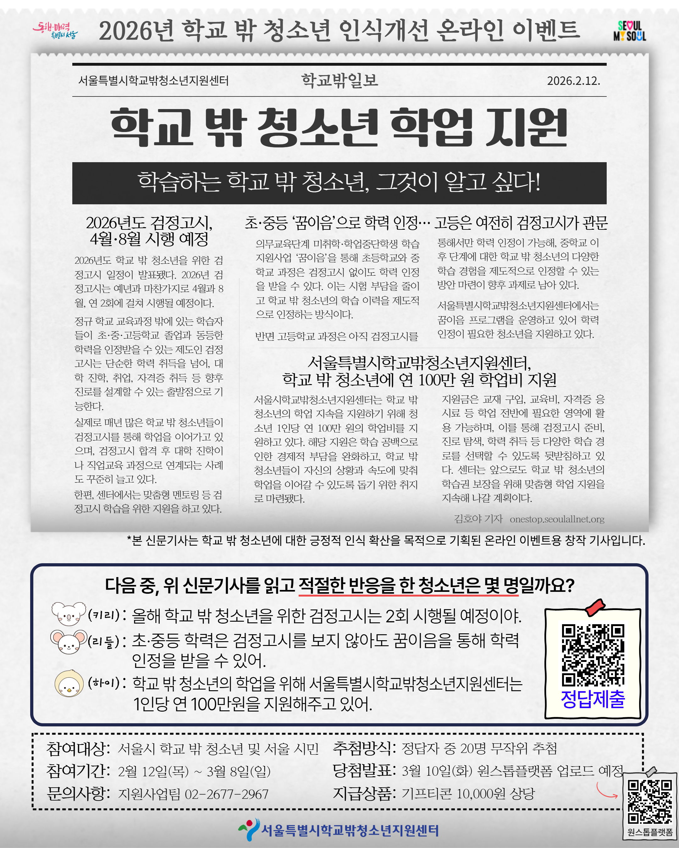 2026년 학교 밖 청소년 인식개선 온라인 이벤트 1차