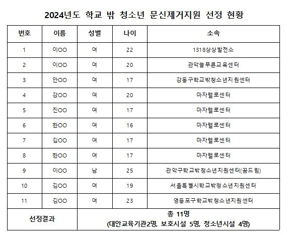 2024년 학교 밖 청소년 문신제거 지원 선정자 알림