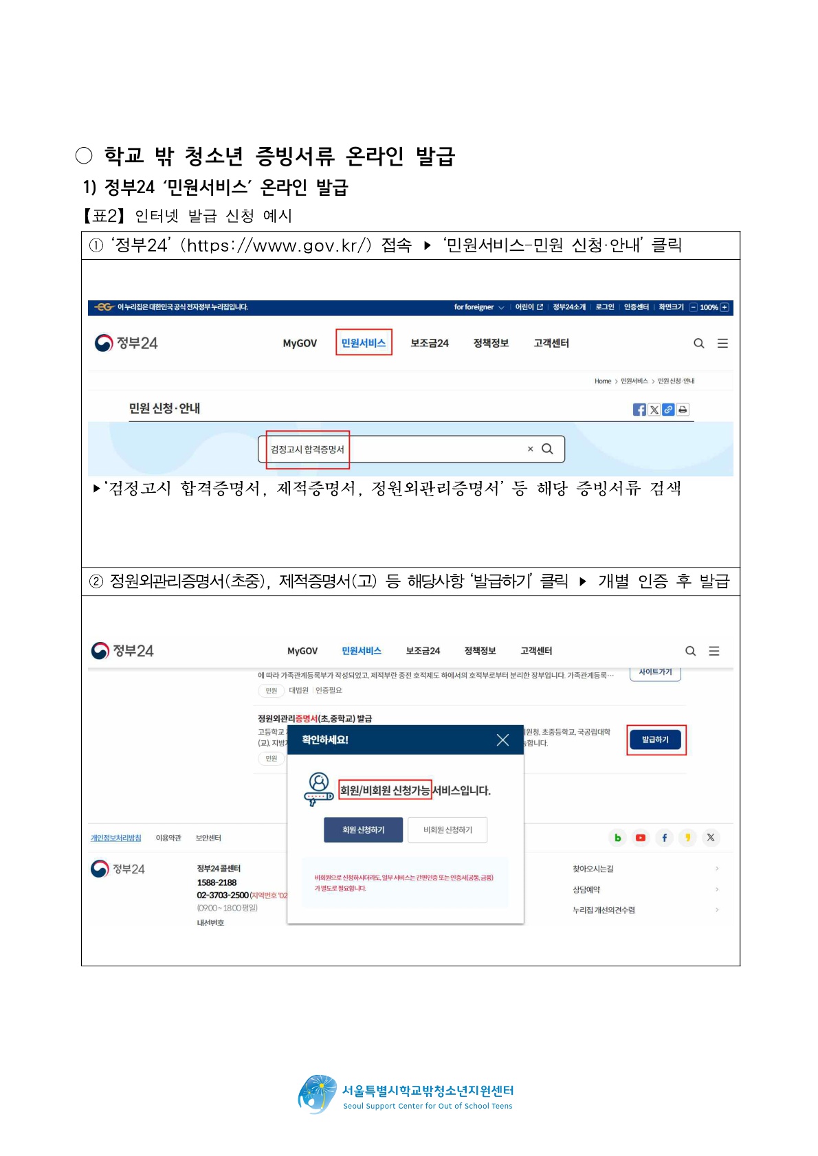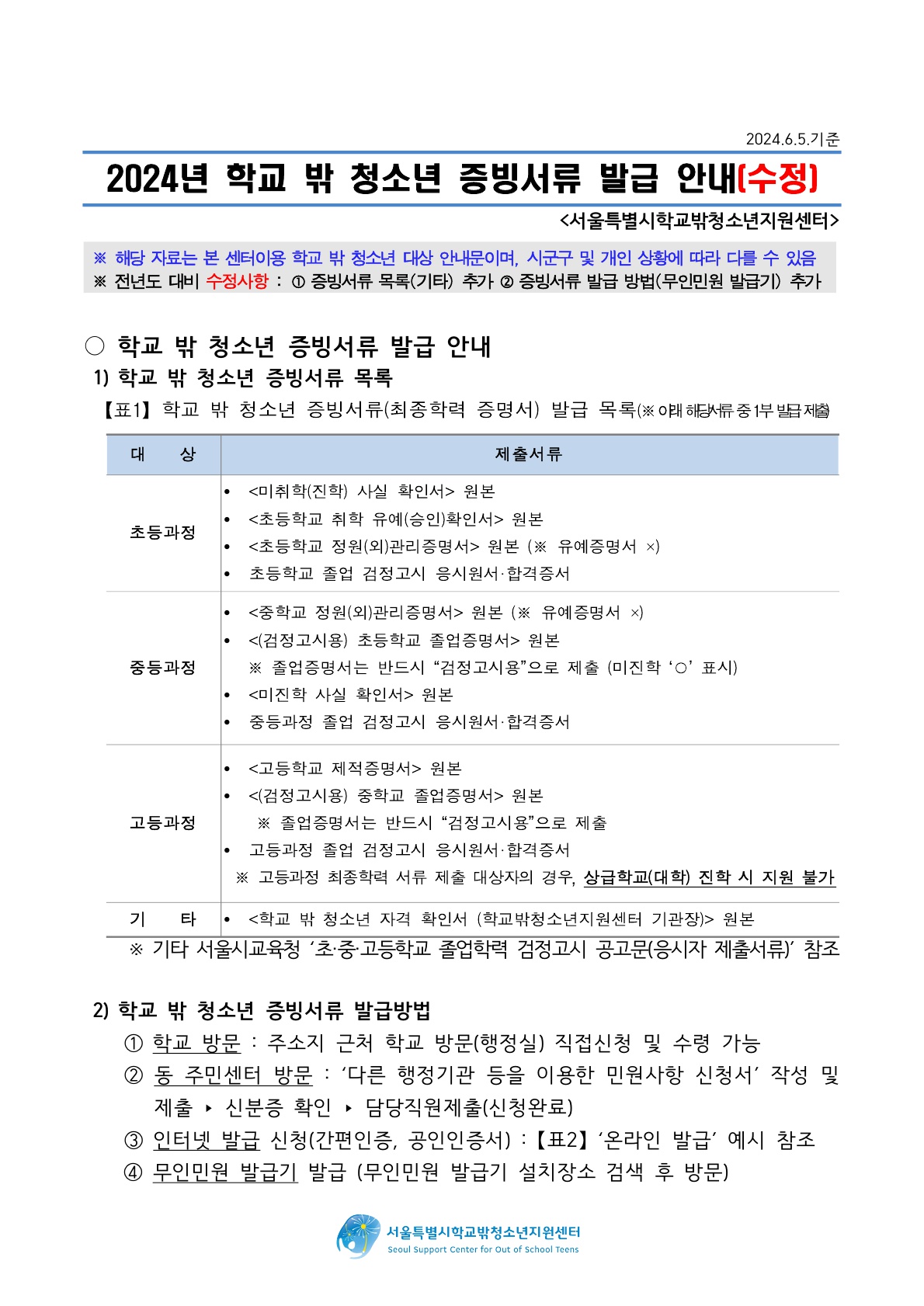2024년 학교 밖 청소년 증빙서류 발급 안내