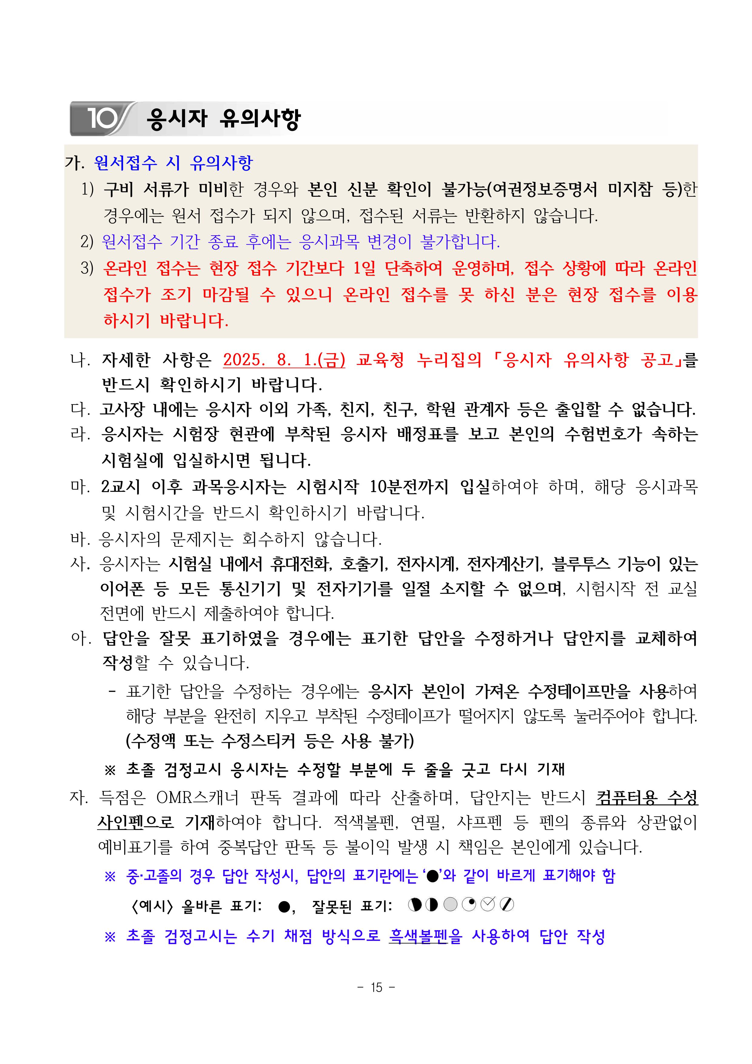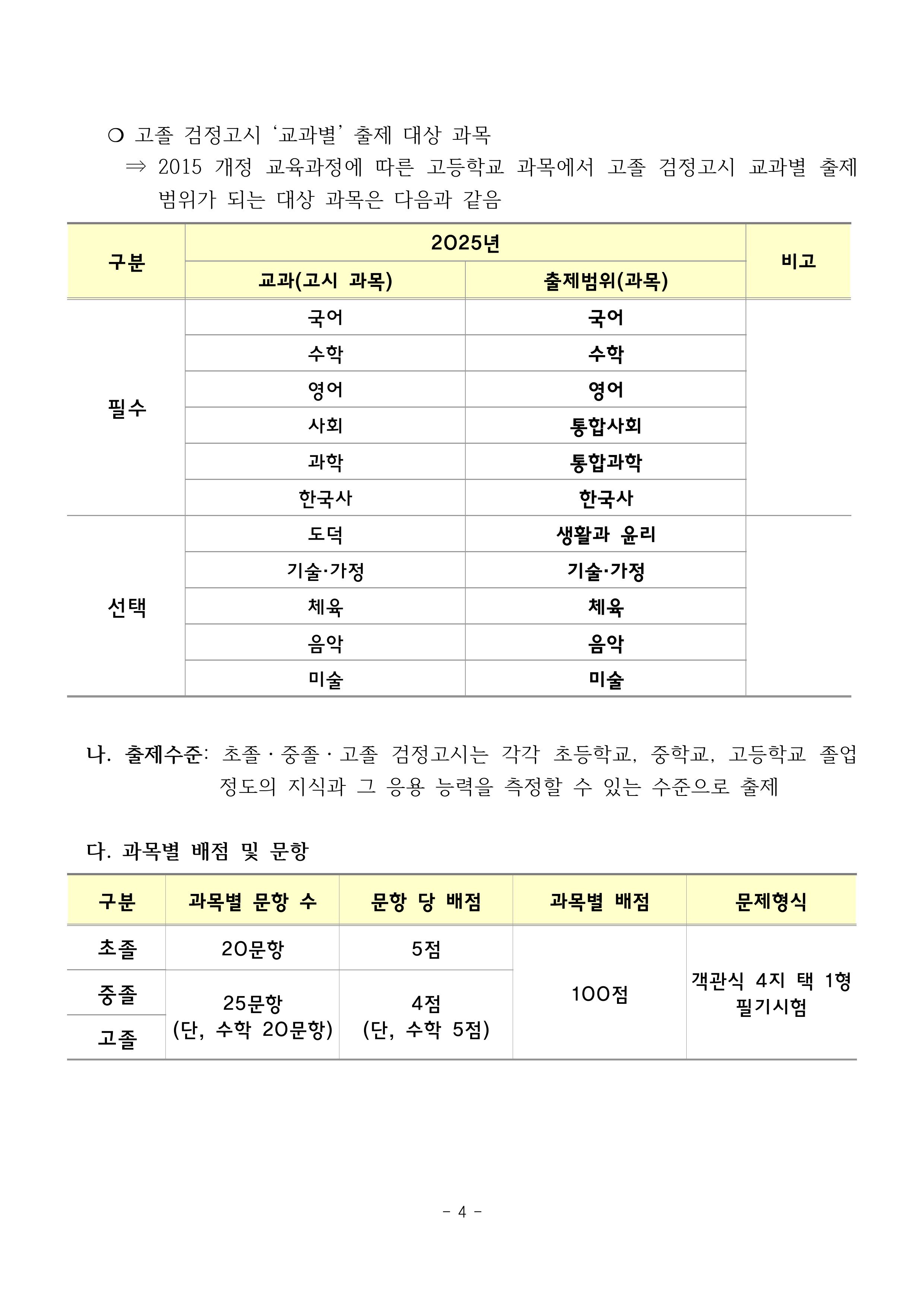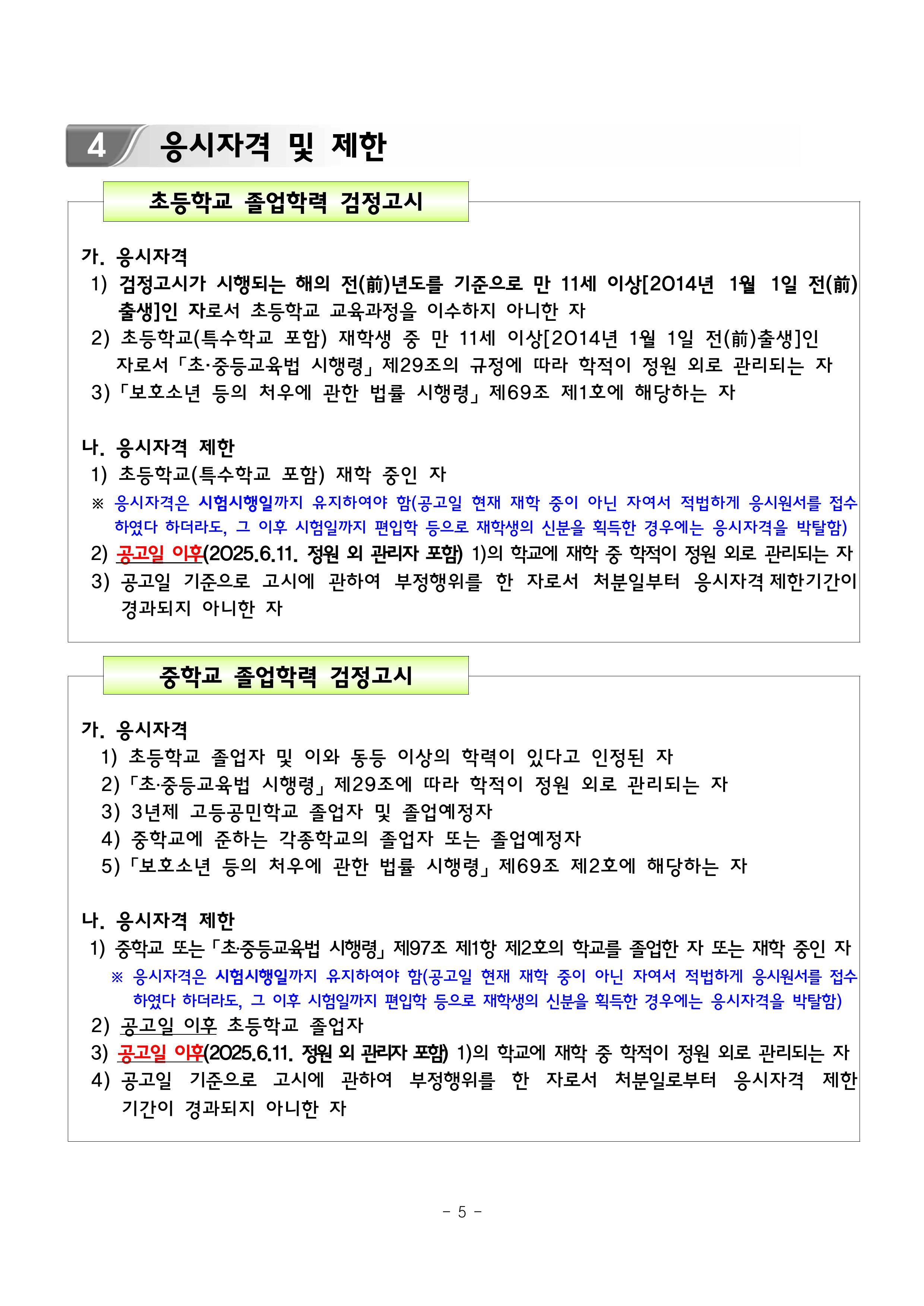 2025년 제2회 초·중·고등학교 졸업학력 검정고시 시행계획 공고