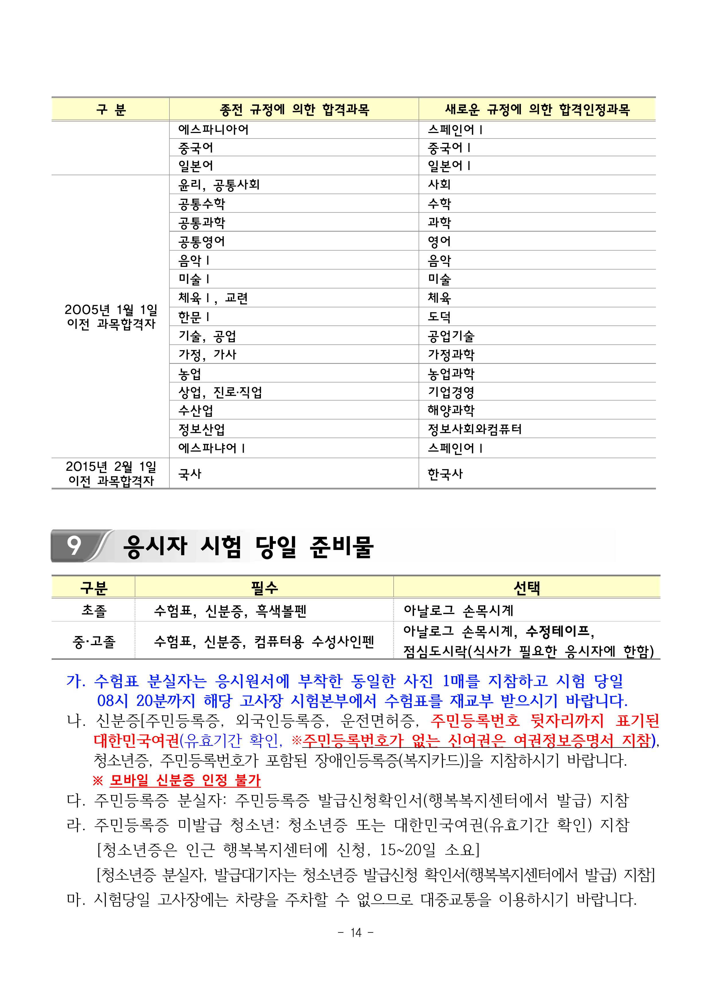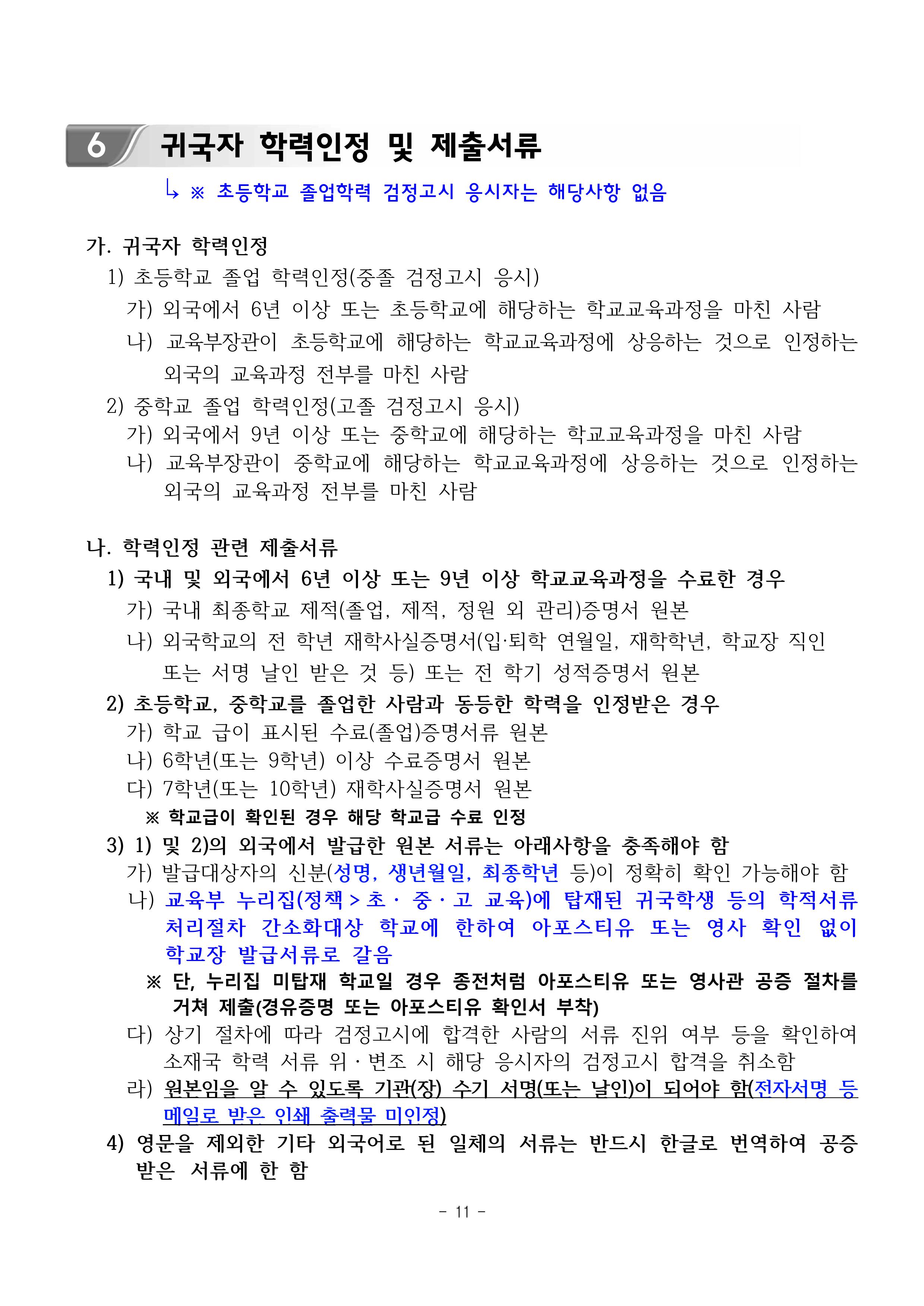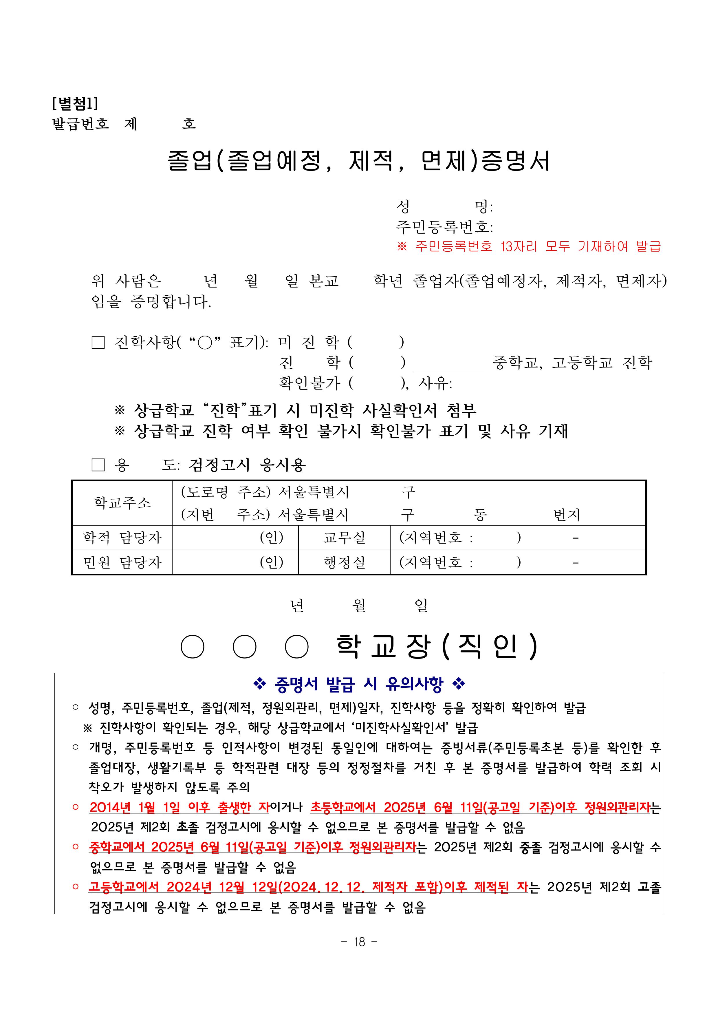 2025년 제2회 초·중·고등학교 졸업학력 검정고시 시행계획 공고