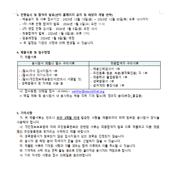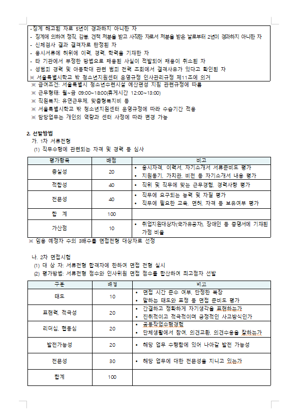2024 서울특별시학교밖청소년지원센터 직원(기간제 계약직) 채용 1차 서류 합격자 발표 안내 (2024.1.…