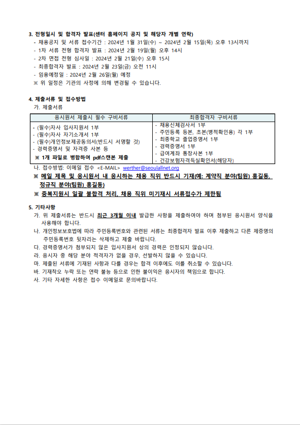 2024 서울특별시학교밖청소년지원센터 직원(기간제 계약직) 채용 1차 서류 합격자 발표 안내 (2024.1.…