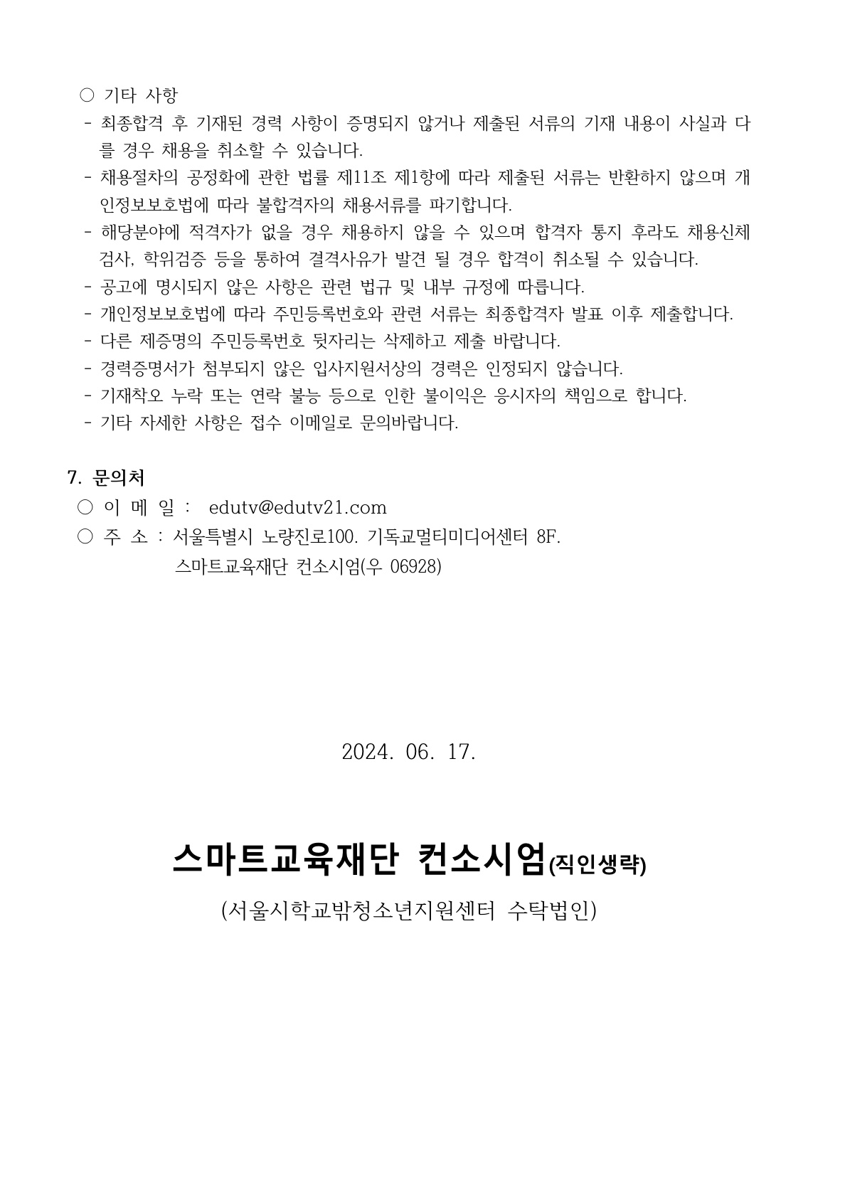 181 2024 서울특별시학교밖청소년지원센터 직원 채용 최종합격자 발표 안내(2024.3.6.면접건) 관리자 03-07 429