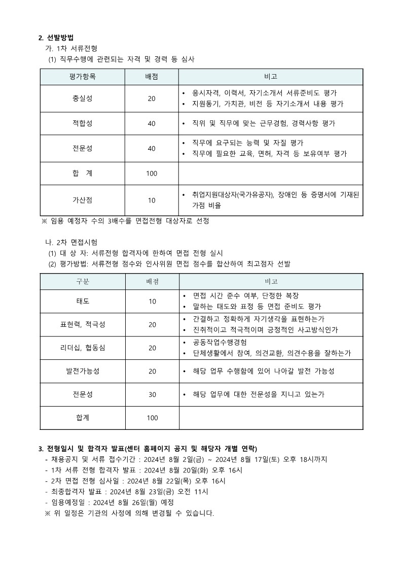2024 서울특별시학교밖청소년지원센터 직원(계약직) 채용 1차 서류 합격자 발표 안내 (2024.8.2. 공…