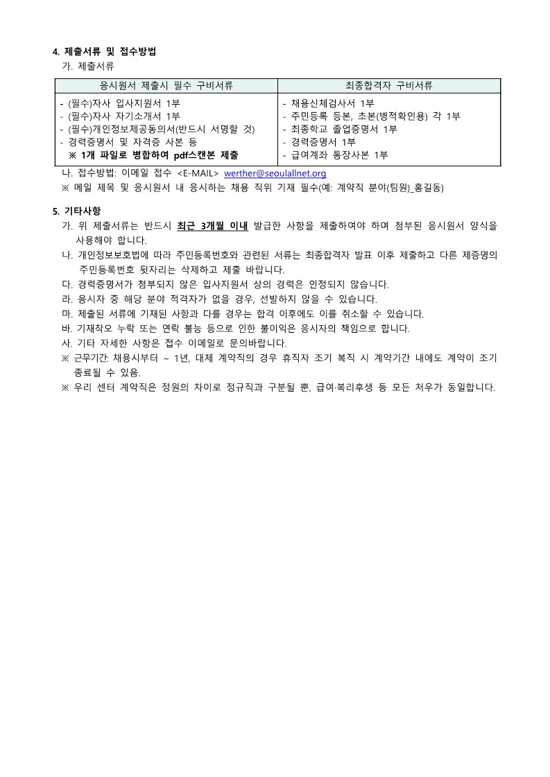 2024 서울특별시학교밖청소년지원센터 직원(계약직) 채용 1차 서류 합격자 발표 안내 (2024.10.24.…