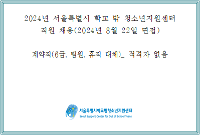 2024 서울특별시학교밖청소년지원센터 직원(계약직) 채용 1차 서류 합격자 발표 안내 (2024.8.22. …