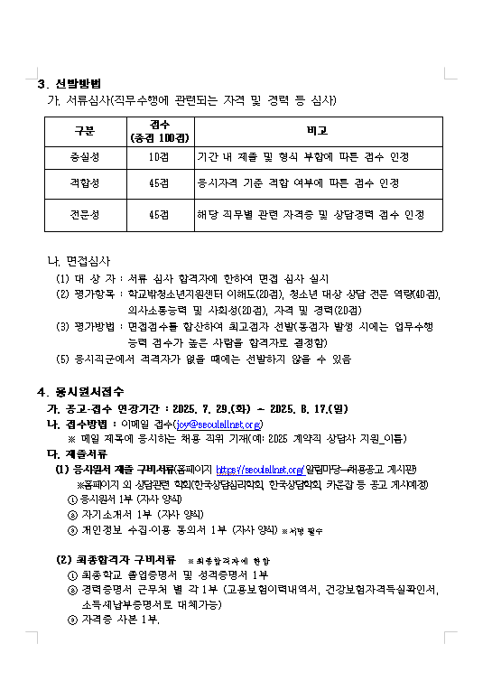 2025년 서울특별시학교밖청소년지원센터 '계약직 상담사' 모집 최종 합격자 발표(2025.8.20. 면접건)